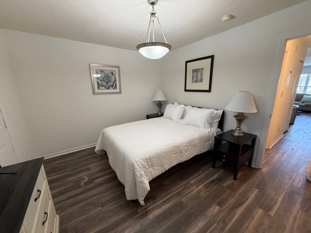 Tucked away in a peaceful and private setting, this spacious 2-bedroom, 2-bath townhome offers the perfect blend of comfort, convenience, and quiet—just minutes from everything Indianapolis has to offer. The Master bedroom features a King bed, and the second bedroom features a Queen bed, with two full bathrooms providing plenty of space and privacy for guests. Enjoy a fully equipped kitchen, Smart TVs, and the convenience of an in-unit washer and dryer. Step outside to your own private patio with table and chairs, perfect for morning coffee or unwinding at night. Parking is effortless with a free private driveway directly in front of the home—no searching, no hassle. While the setting is quiet and secluded, you’re just minutes from: Keystone Fashion Mall Castleton Square Mall Top restaurants, shopping, and grocery options Whether you're in town for business, a family visit, or an extended stay, this home offers a peaceful alternative to hotels with unbeatable access to the city.