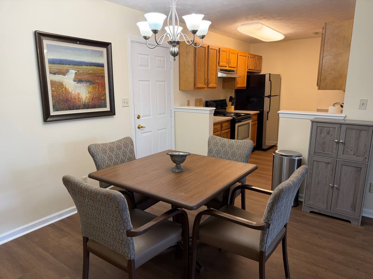 Guests have private and exclusive access to the entire townhome. You’ll also enjoy access to the shared outdoor spaces, including the surrounding yards, green space, and garden areas. The community is pet-friendly, with convenient walking paths and nearby green areas—perfect for getting outside and stretching your legs. Trash and waste stations are located on-site for easy disposal during your stay. Parking is simple with a private driveway and garage directly in front of the home, making loading and unloading effortless.