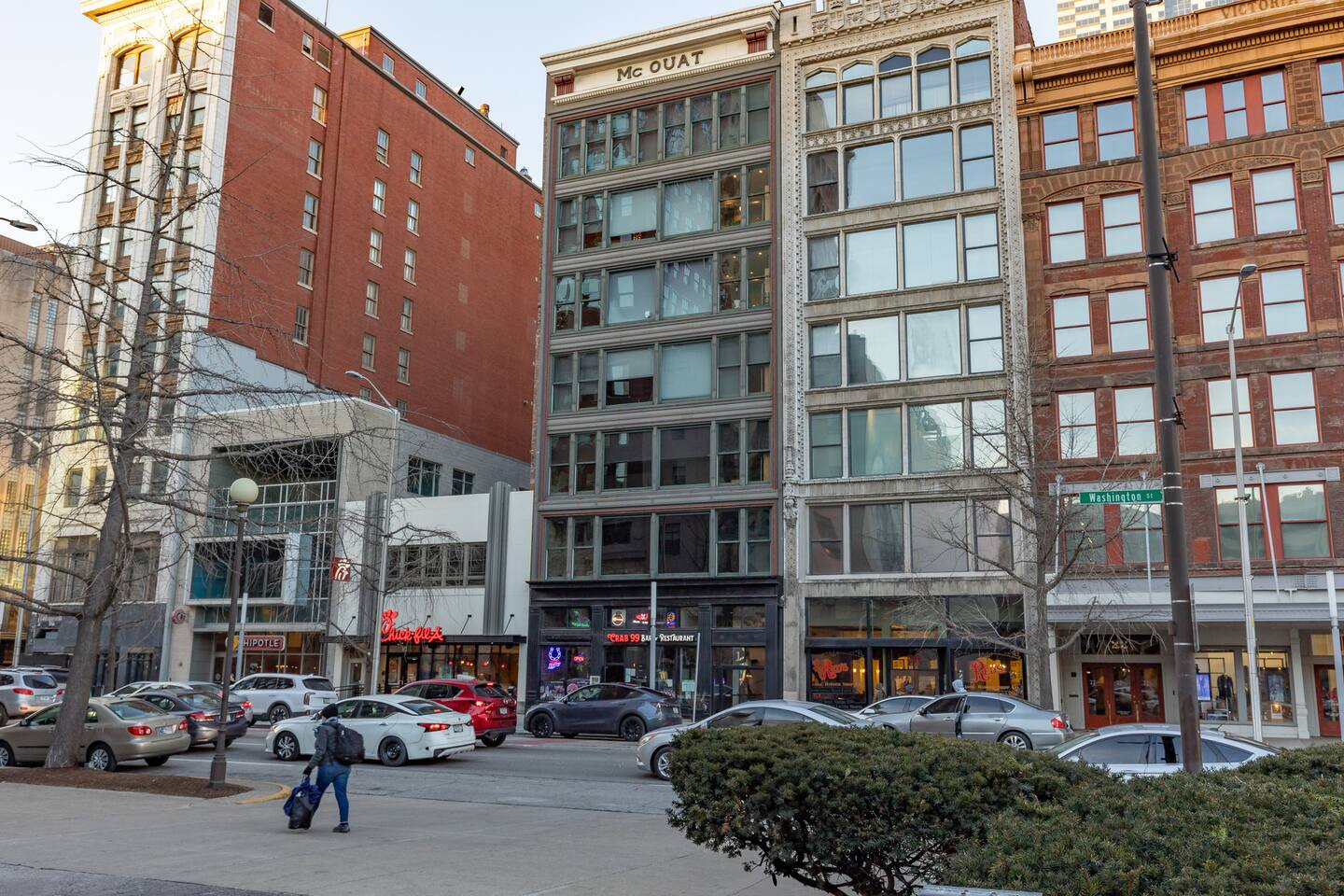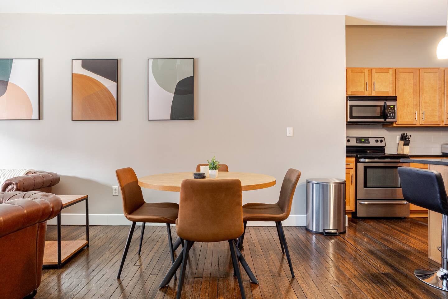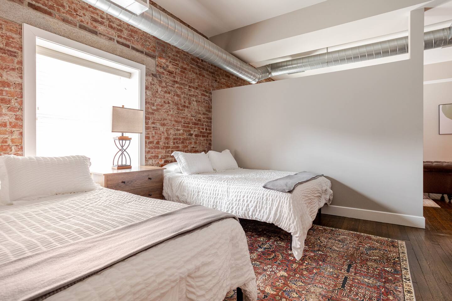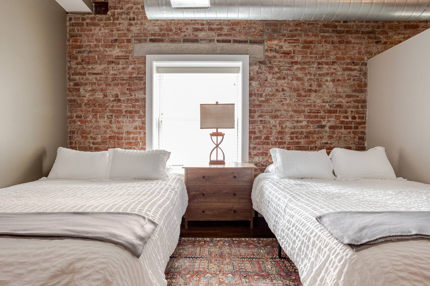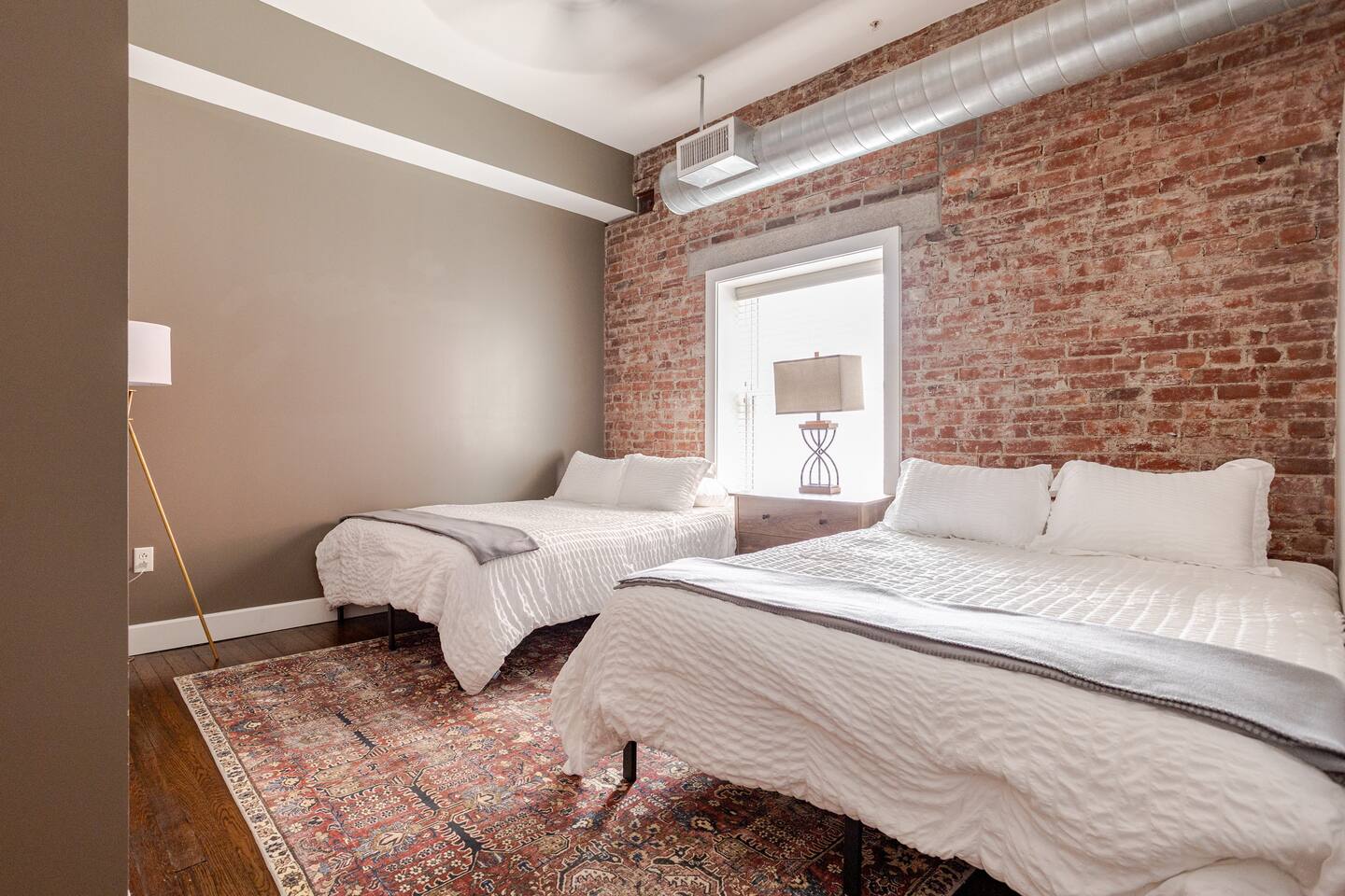 Welcome to McOuat Place, your stylish urban loft in the heart of downtown Indianapolis. Step into an exceptionally spacious apartment where modern design meets classic comfort. Exposed brick walls and comfortable leather sofas create a warm, inviting atmosphere perfect for relaxing after a day of exploring the city. You are perfectly positioned to experience the best of Indy. Located in the heart of downtown, you are just steps away from the city's top attractions, dining, and entertainment.