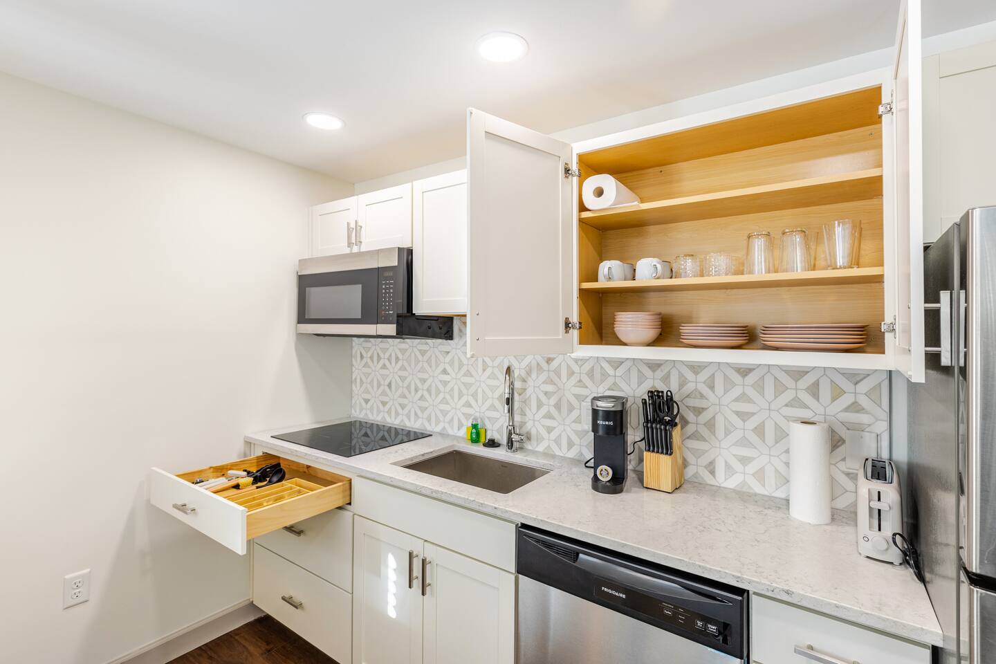 * This unit is located on the private, quiet back side of a larger complex that also houses public retail shops at the front. While your unit and the residential courtyard are private, you will be near an active and vibrant commercial area. * Early check-in and late check-out may be available. These can be requested through the guest portal link that will be shared with you in your messages prior to your arrival.