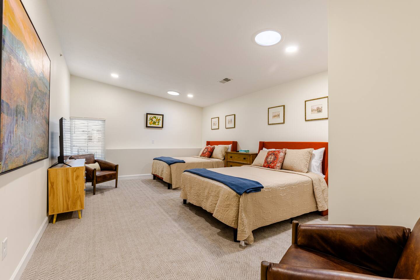 Guests will enjoy complete and private access to their entire 4-bedroom unit, ensuring a personal and uninterrupted stay. - Private Access: You will have exclusive use of the entire 4-bedroom unit, two private elevated outdoor decks, and the large sunroom. - Shared Access: You are welcome to use the shared community spaces, including the outdoor courtyard with its fountain, grilling stations, and various patio gathering areas. - Parking: Your stay includes complimentary free parking available for guests on the premises.