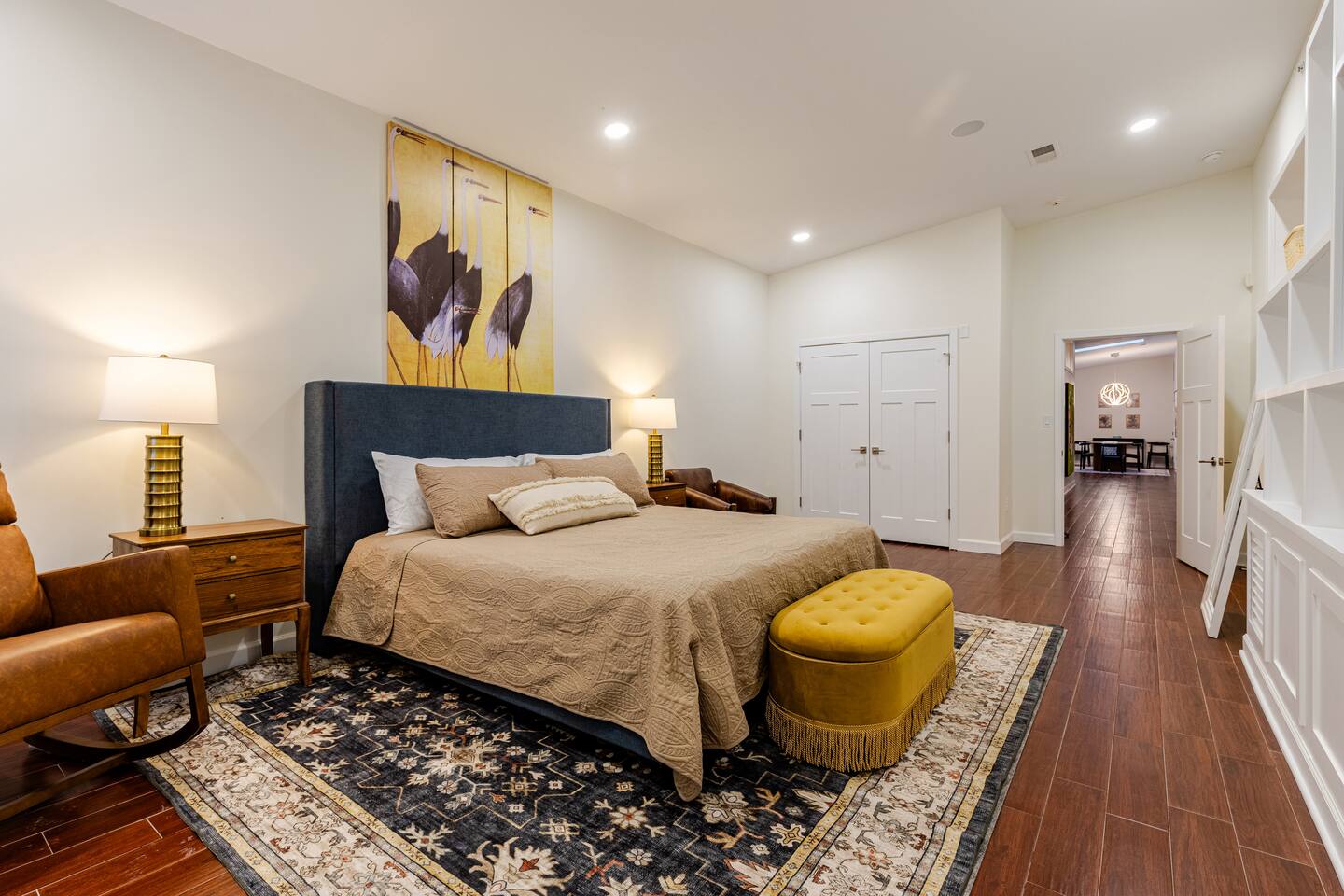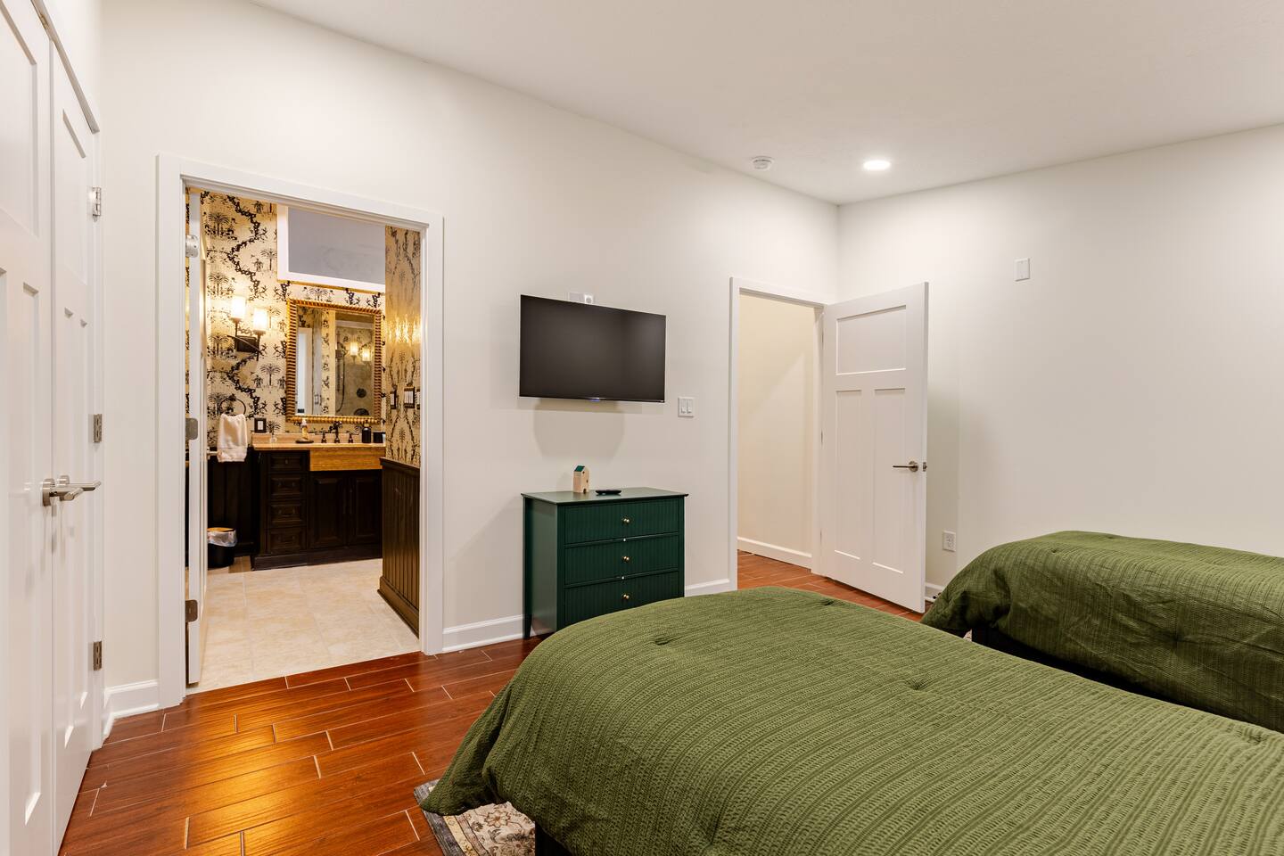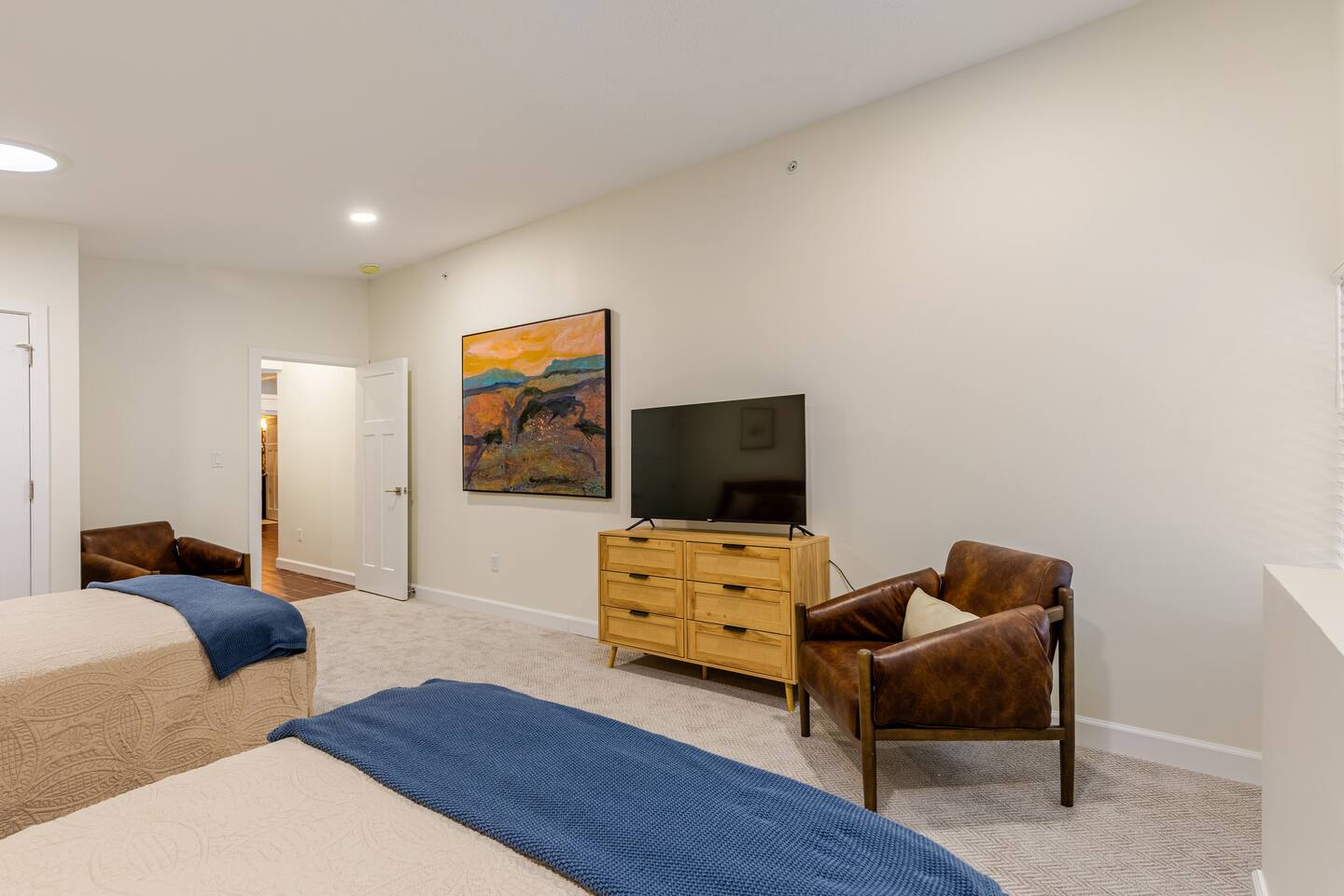 Step into modern luxury in this brand-new, massive 4-bedroom retreat, perfect for large groups and families. The interior is designed for comfort and style, featuring high-end finishes and unique design touches throughout. Main Living Area: - Vast open-concept layout combining the living room, dining space, and kitchen. - Fully equipped, high-end kitchen ready for your culinary adventures. - Thoughtfully decorated with unique wallpaper and modern furnishings. Bedrooms & Relaxation: - Four spacious and private bedrooms. - A large, bright sunroom provides an additional, tranquil space to relax and unwind. Shared Community Amenities: Monon Lofts is a newly renovated luxury property that includes a serene shared courtyard on the private back side of the complex. Enjoy access to: - Community grills for outdoor cooking. - Stylish patio spaces and gathering areas. - A calming fountain and reflection area.