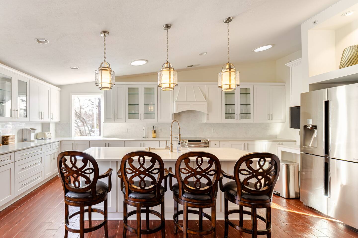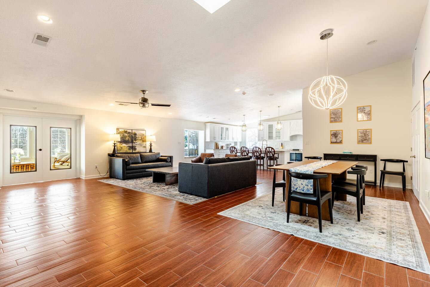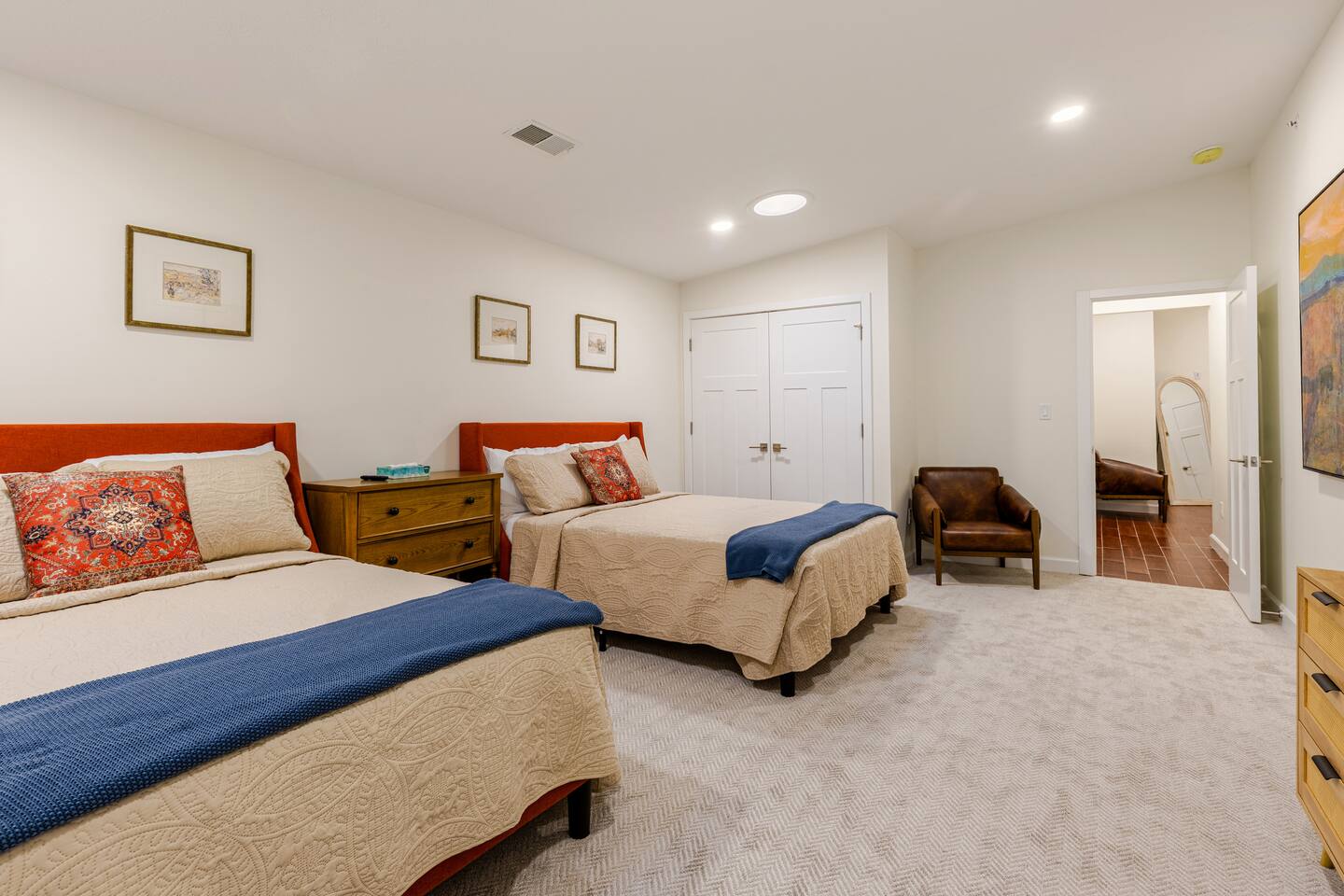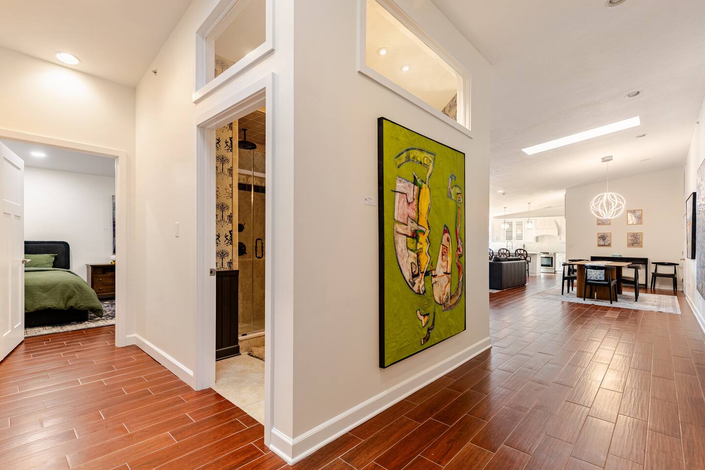 Step into modern luxury in this brand-new, massive 4-bedroom retreat, perfect for large groups and families. The interior is designed for comfort and style, featuring high-end finishes and unique design touches throughout. Main Living Area: - Vast open-concept layout combining the living room, dining space, and kitchen. - Fully equipped, high-end kitchen ready for your culinary adventures. - Thoughtfully decorated with unique wallpaper and modern furnishings. Bedrooms & Relaxation: - Four spacious and private bedrooms. - A large, bright sunroom provides an additional, tranquil space to relax and unwind. Shared Community Amenities: Monon Lofts is a newly renovated luxury property that includes a serene shared courtyard on the private back side of the complex. Enjoy access to: - Community grills for outdoor cooking. - Stylish patio spaces and gathering areas. - A calming fountain and reflection area.