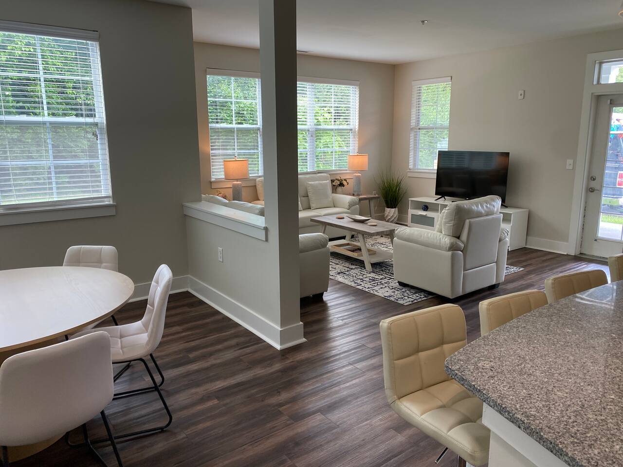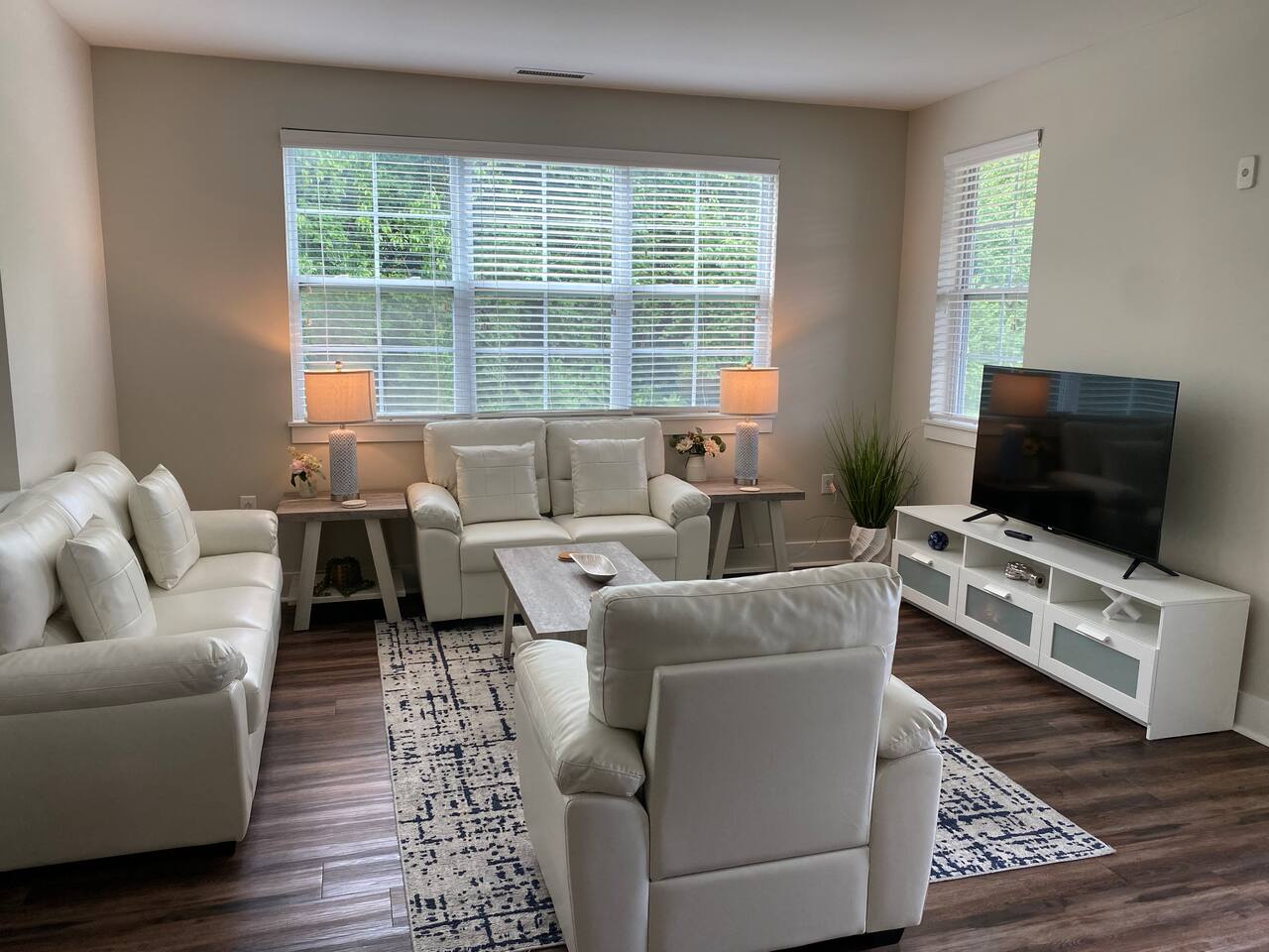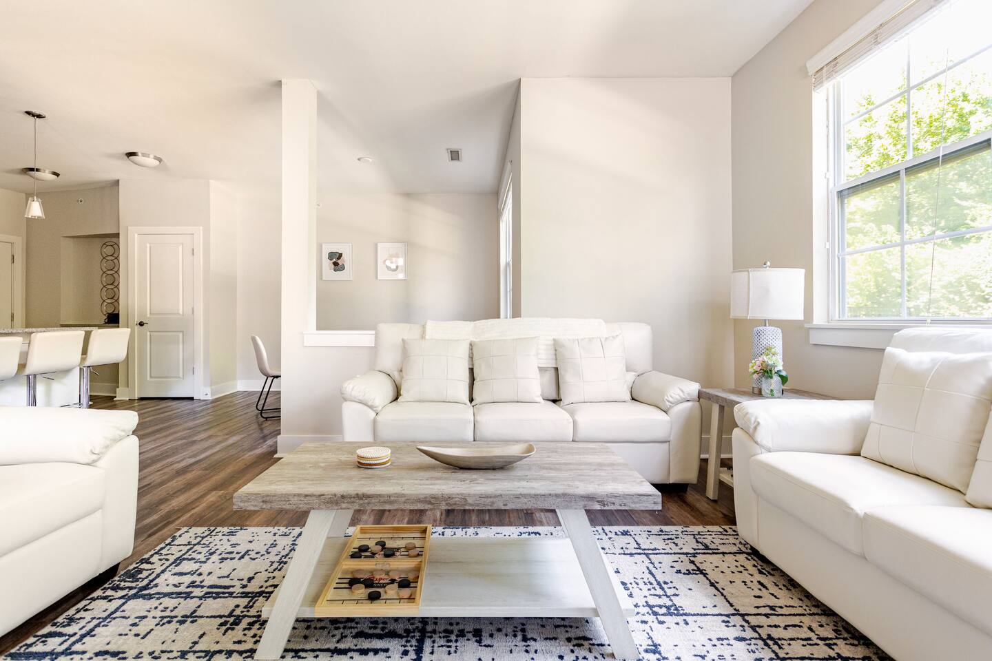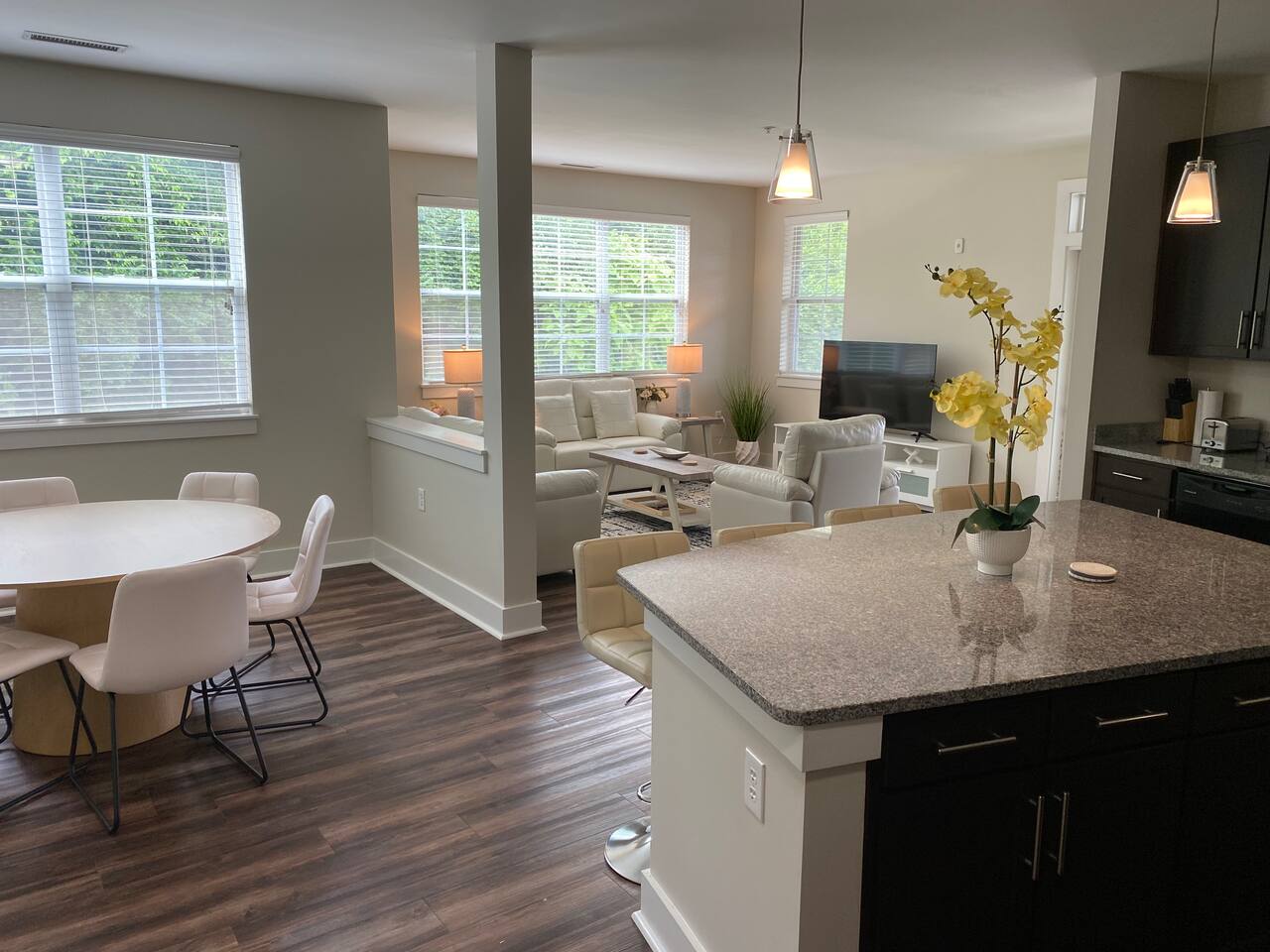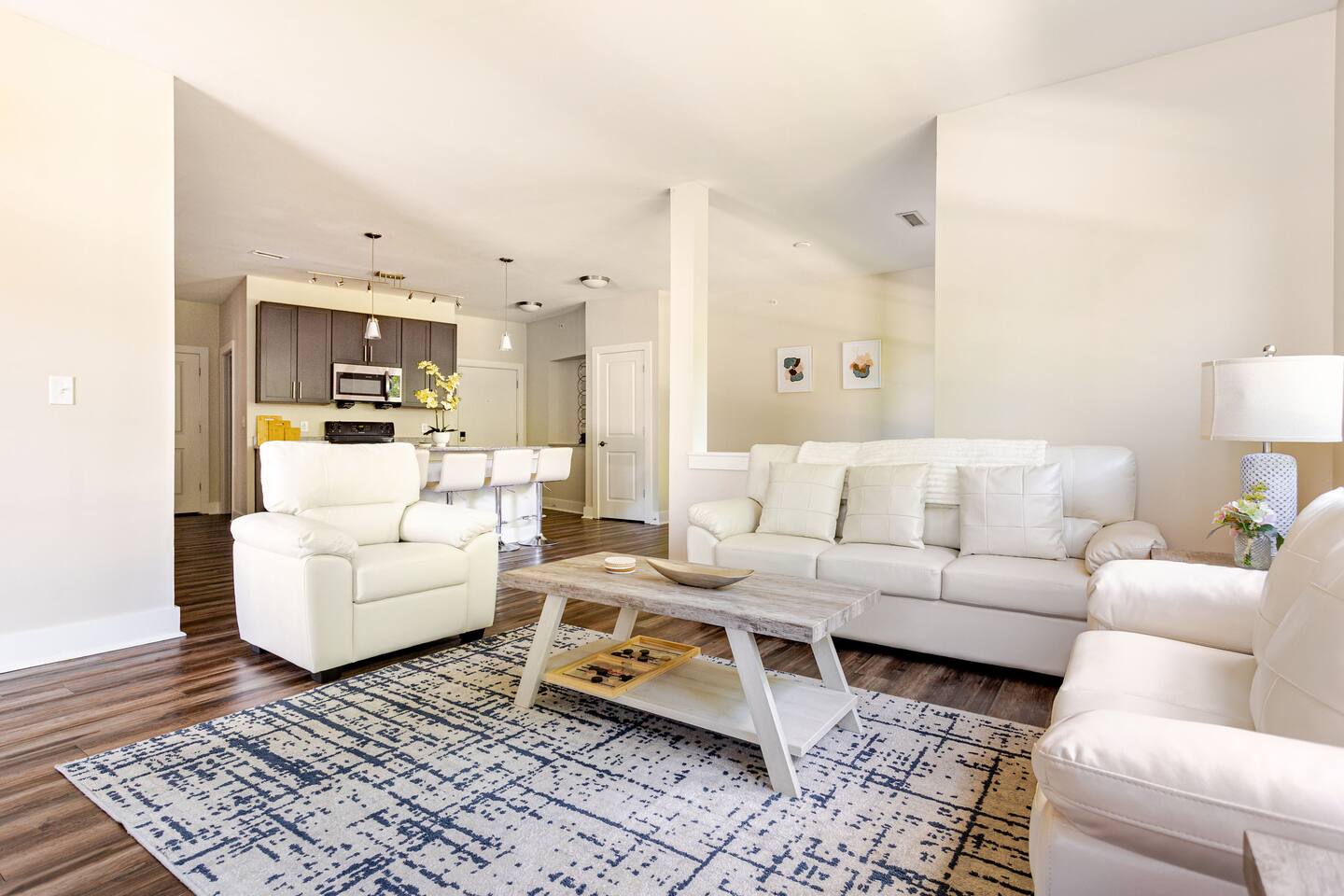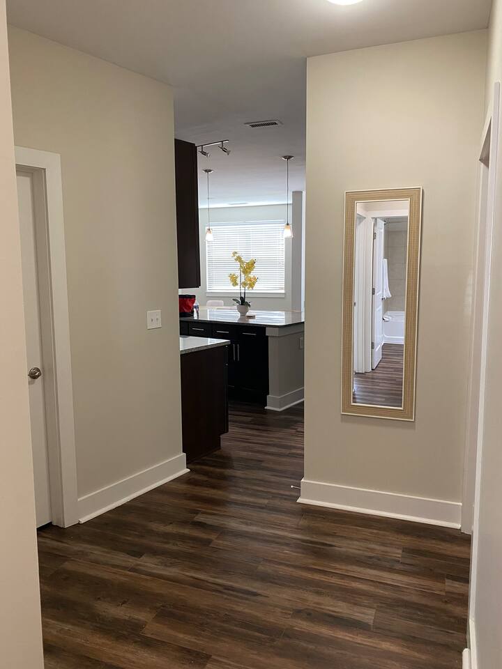 Your private apartment is a spacious and modern retreat designed for relaxation and convenience. The open-plan living area connects seamlessly to a full kitchen, creating a welcoming environment for everyone to gather. Key Features: - 3 stylish bedrooms, each equipped with a smart TV - 2 full bathrooms - 2 large walk-in closets and 1 standard closet - Fully equipped kitchen with a large island and 4 bar stools - Dining table with seating for 6 - In-unit washer and dryer - A private patio for your enjoyment