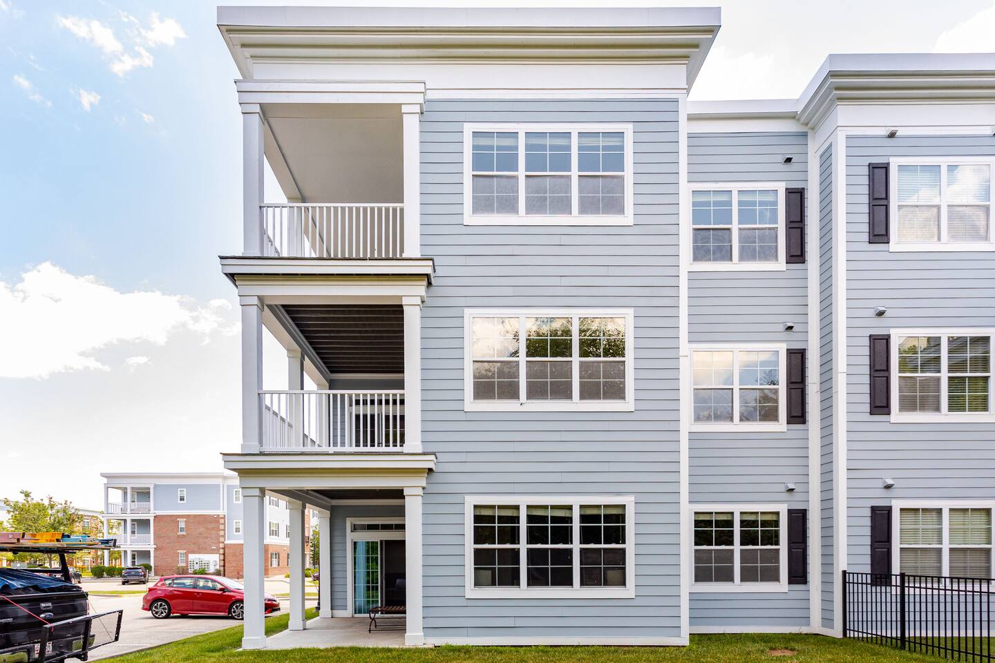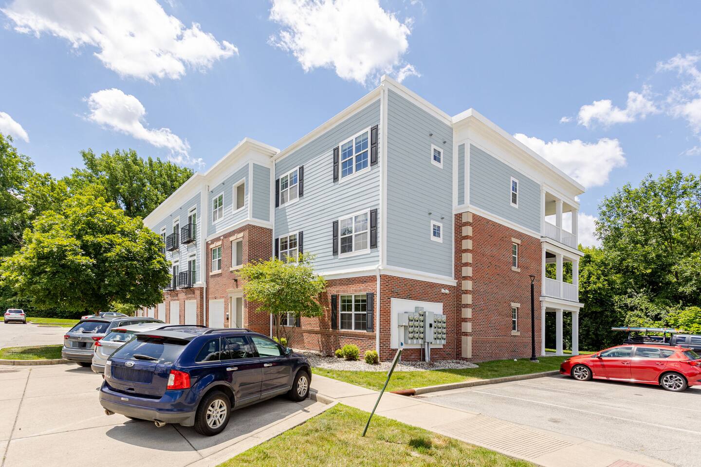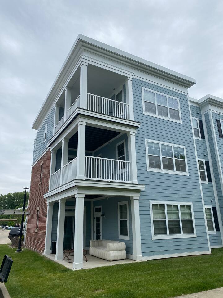 Luxurious 3BR riverside apartment in Indianapolis's gated Solana community. Perfect for families or groups, this stylish retreat comfortably fits 6+ guests. Enjoy resort-style amenities including a pool, massive fitness center, and river access. Your perfect home away from home with modern comforts and serene views.
