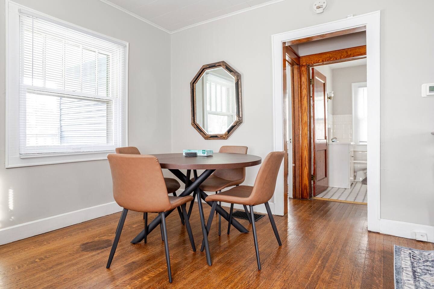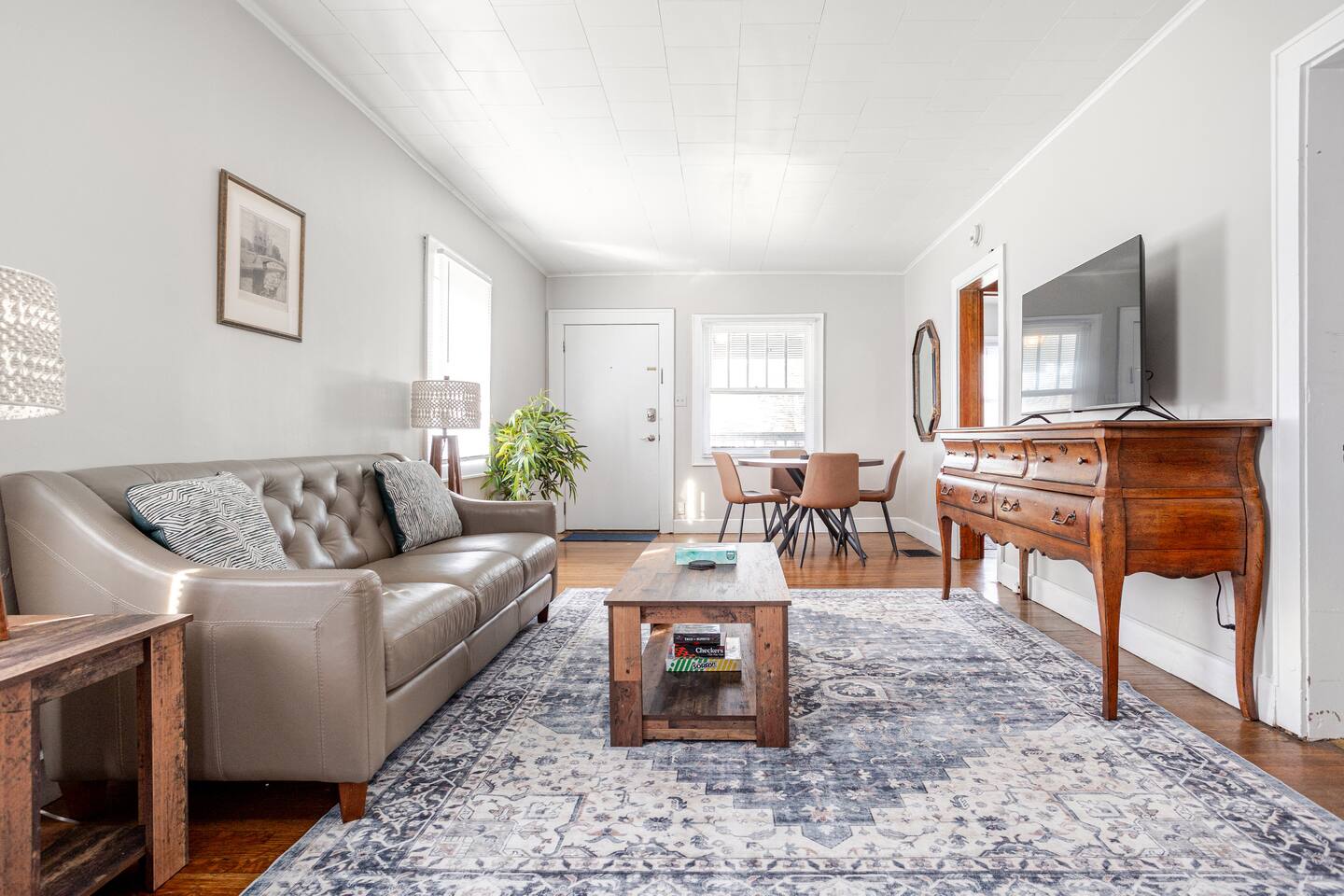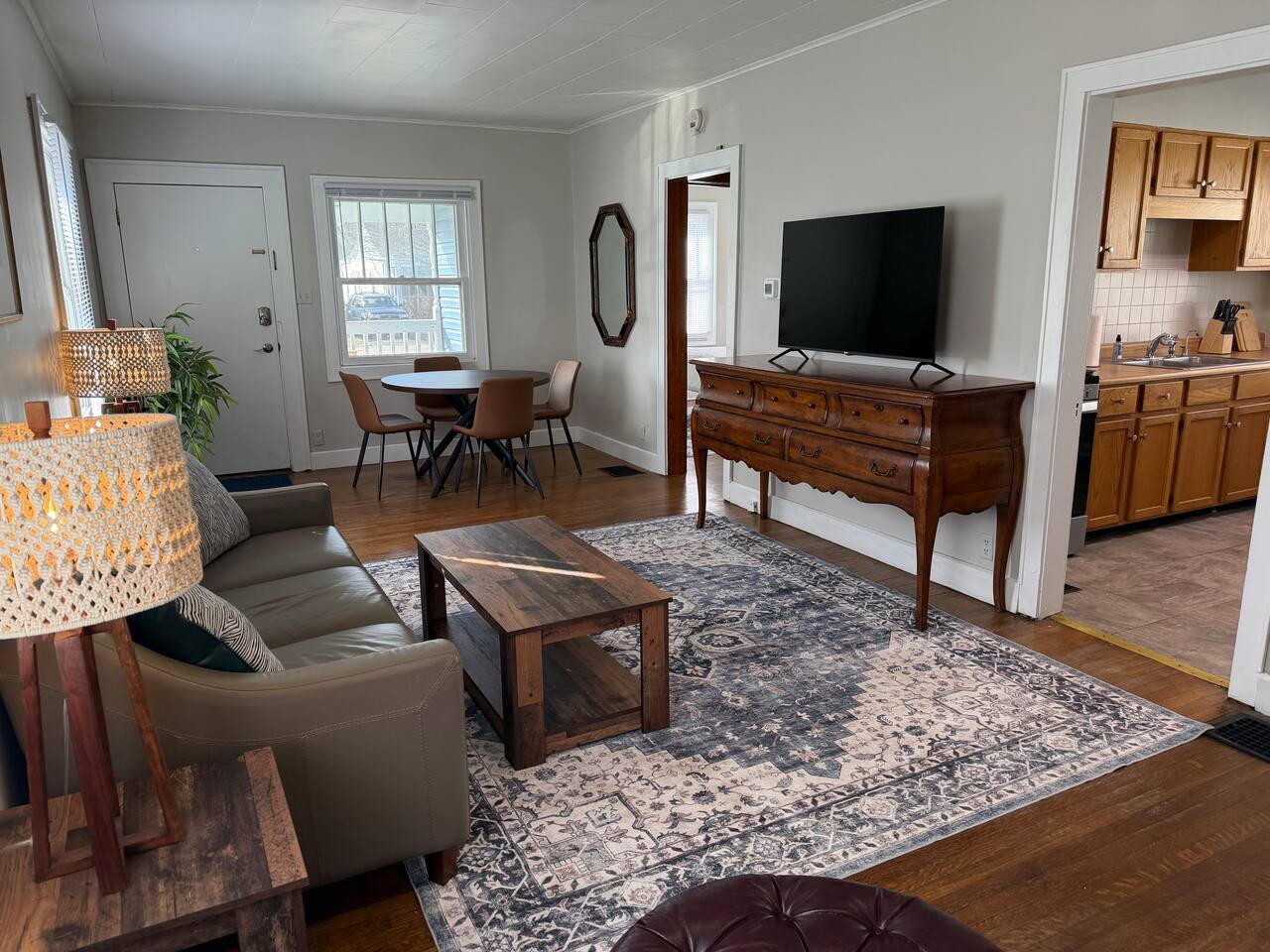 This thoughtfully furnished home is designed for a relaxing stay: • 2 comfortable bedrooms with TV’s and quality linens • 1 full bathroom with tub/shower • Bright living room with smart TV • Fully stocked kitchen with gas range • Dedicated dining area • Fast WiFi • Private driveway parking • Fully fenced backyard — perfect for relaxing outdoors The interior features warm hardwood floors, neutral tones, and curated furnishings that create a clean, inviting atmosphere — whether you’re here for a weekend getaway, visiting family, or working remotely. You’re truly in the heart of Broad Ripple: • Walk to Broad Ripple Village shops & dining • Minutes to the Monon Trail • 15 minutes to Downtown Indianapolis • Easy access to Butler University Leave the car parked and explore on foot.