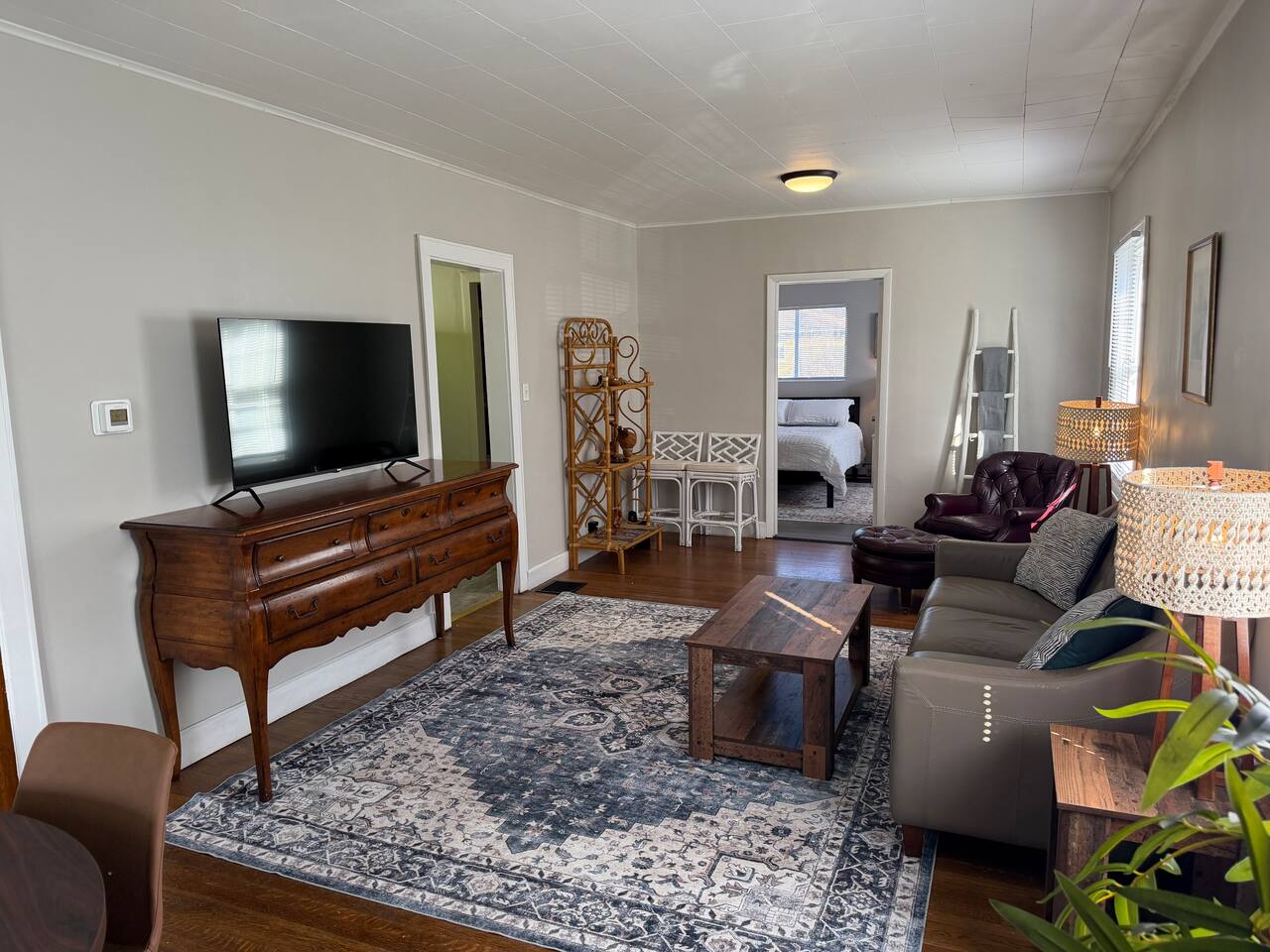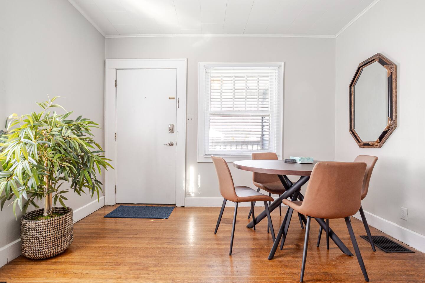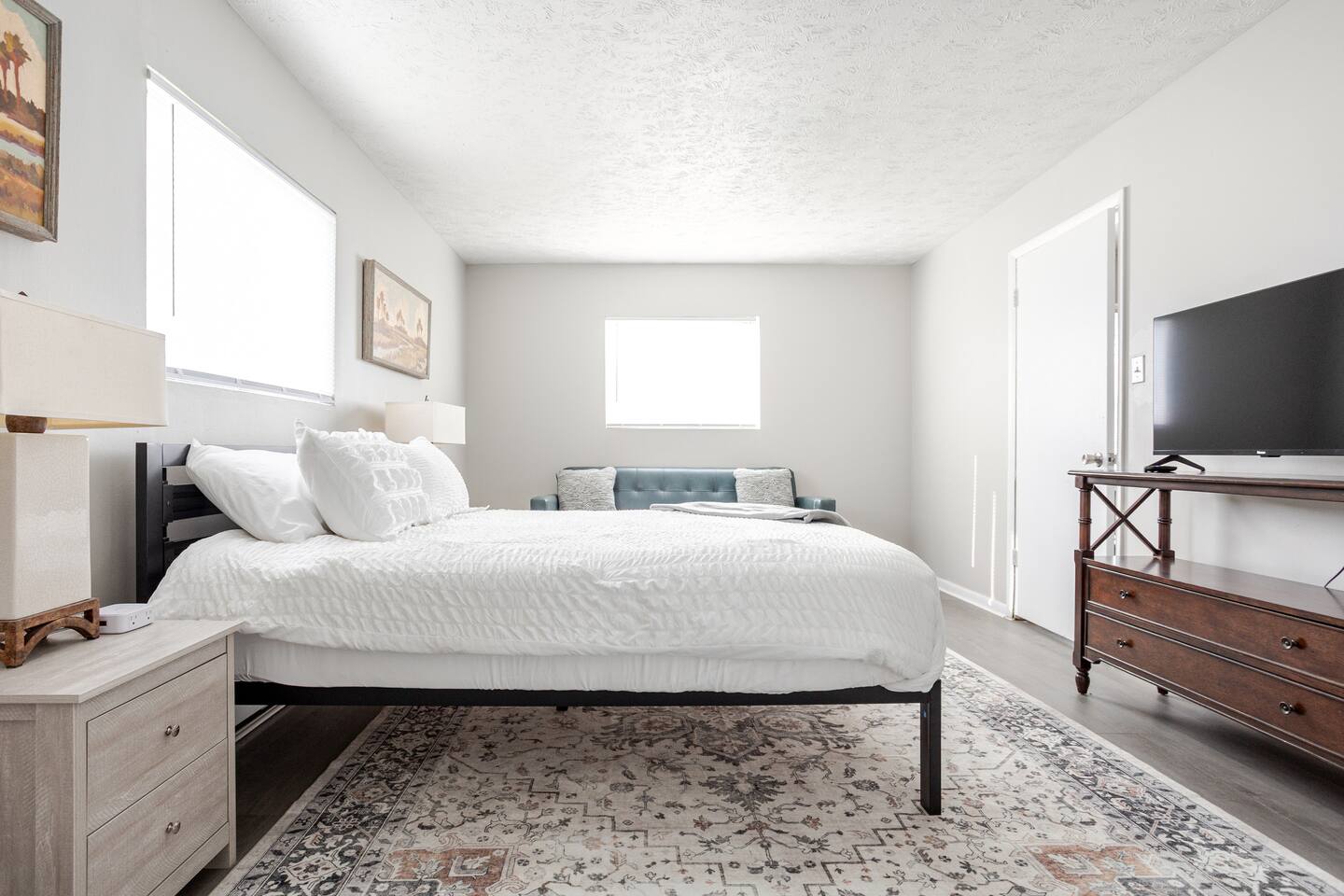 This thoughtfully furnished home is designed for a relaxing stay: • 2 comfortable bedrooms with TV’s and quality linens • 1 full bathroom with tub/shower • Bright living room with smart TV • Fully stocked kitchen with gas range • Dedicated dining area • Fast WiFi • Private driveway parking • Fully fenced backyard — perfect for relaxing outdoors The interior features warm hardwood floors, neutral tones, and curated furnishings that create a clean, inviting atmosphere — whether you’re here for a weekend getaway, visiting family, or working remotely. You’re truly in the heart of Broad Ripple: • Walk to Broad Ripple Village shops & dining • Minutes to the Monon Trail • 15 minutes to Downtown Indianapolis • Easy access to Butler University Leave the car parked and explore on foot.